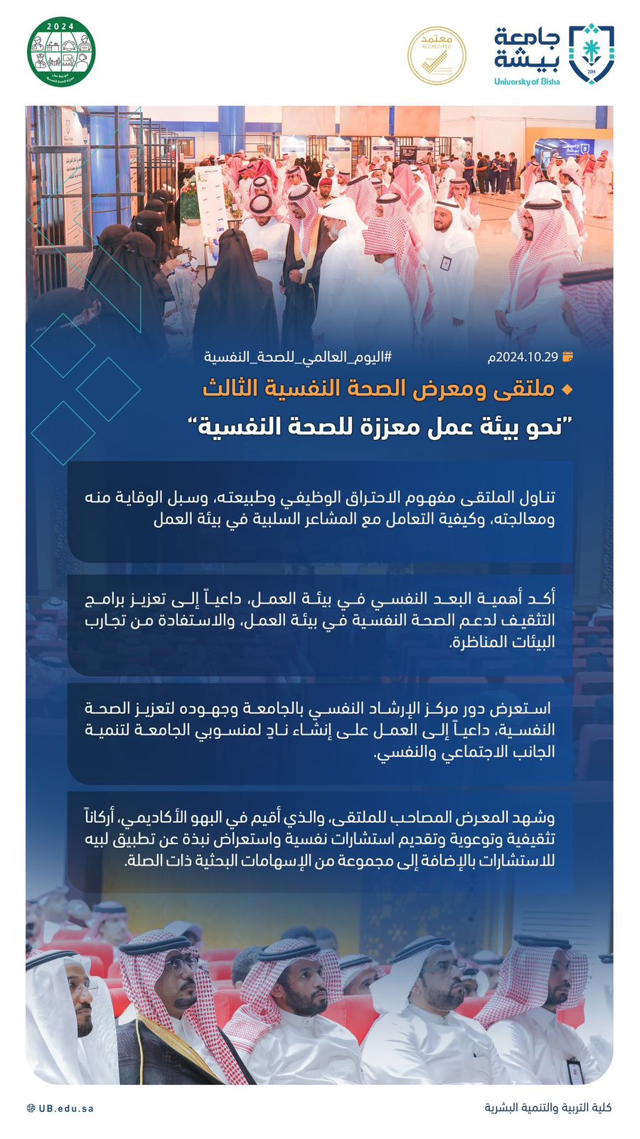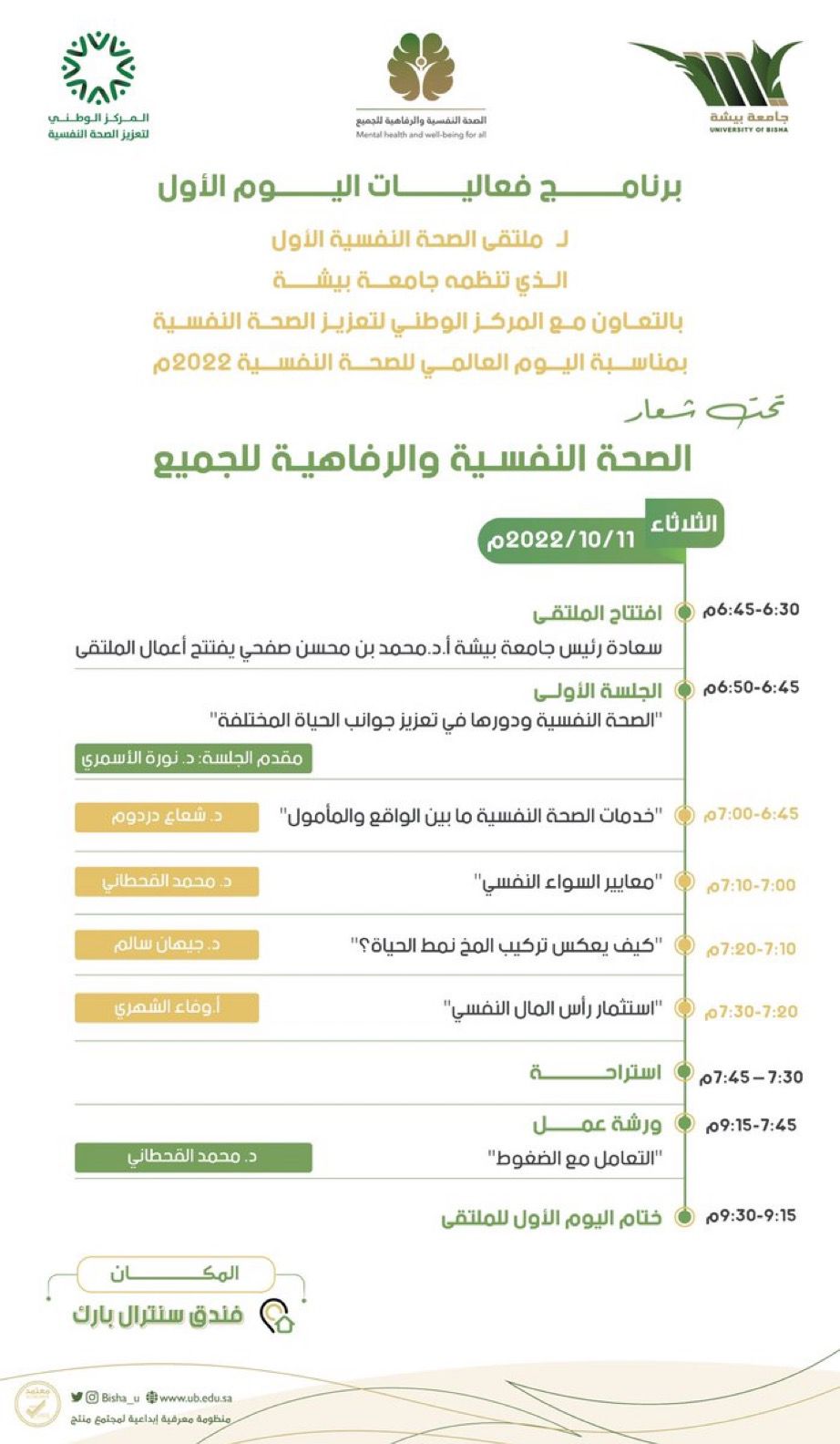 تقيم جامعة بيشة ملتقى الصحة النفسية بالتعاون مع المركز الوطني لتعزيز الصحة النفسية