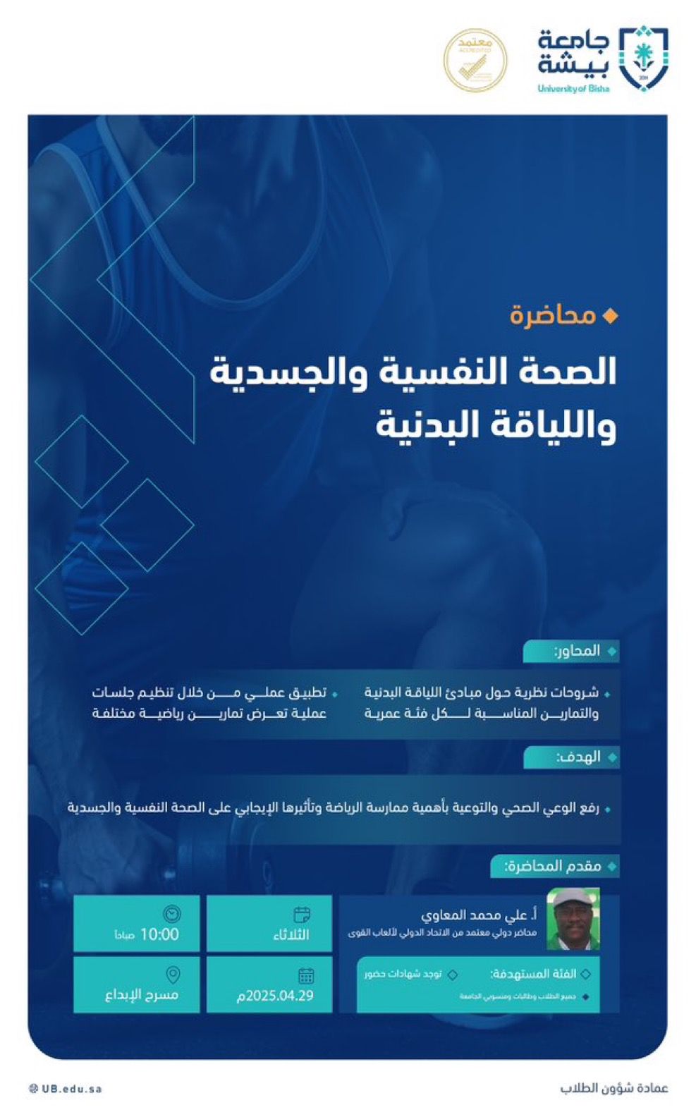 محاضرة لرفع الوعي الصحي والتوعية بأهمية ممارسة الرياضة وتأثيرها على الصحة النفسية والجسدية
